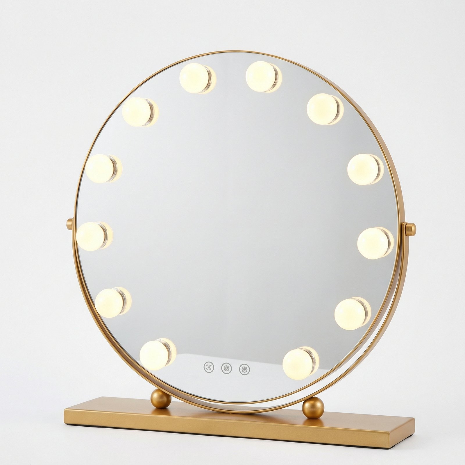 Transform your morning routine with the AuraGlow Hollywood Vanity Mirror, a masterpiece of style and functionality. Featuring 12 dimmable LED bulbs and a sleek gold iron frame, this round led mirror provides professional-grade lighting. Its 44cm diameter and 360° rotation ensure you capture every angle perfectly for a flawless makeup application every time.