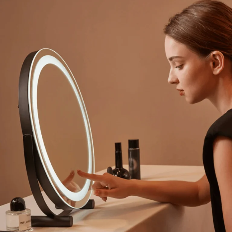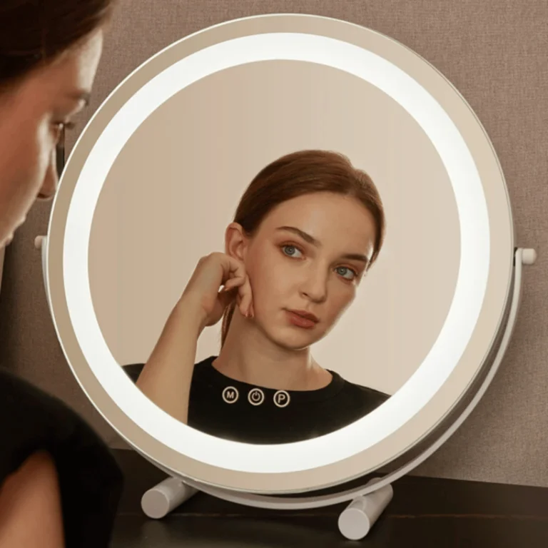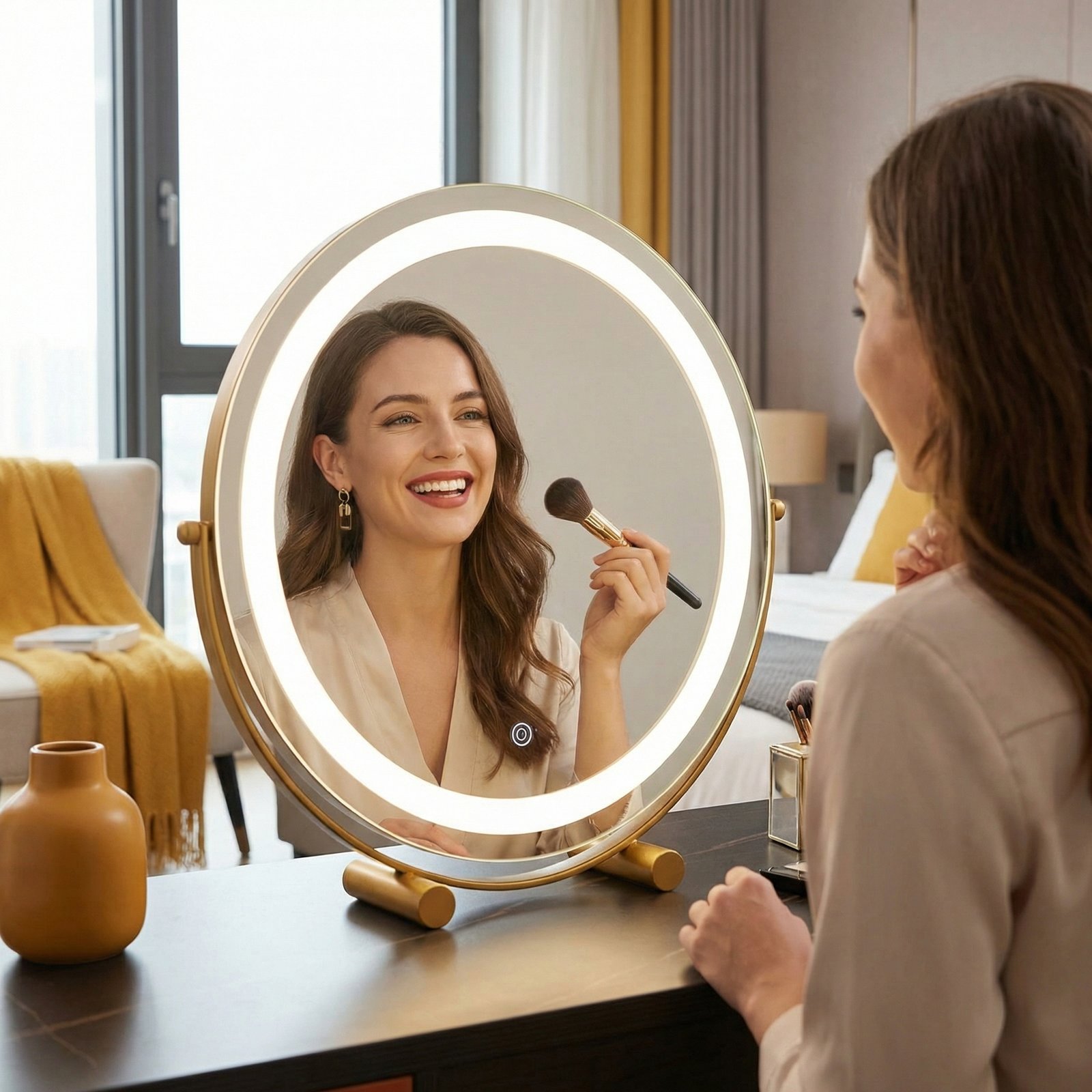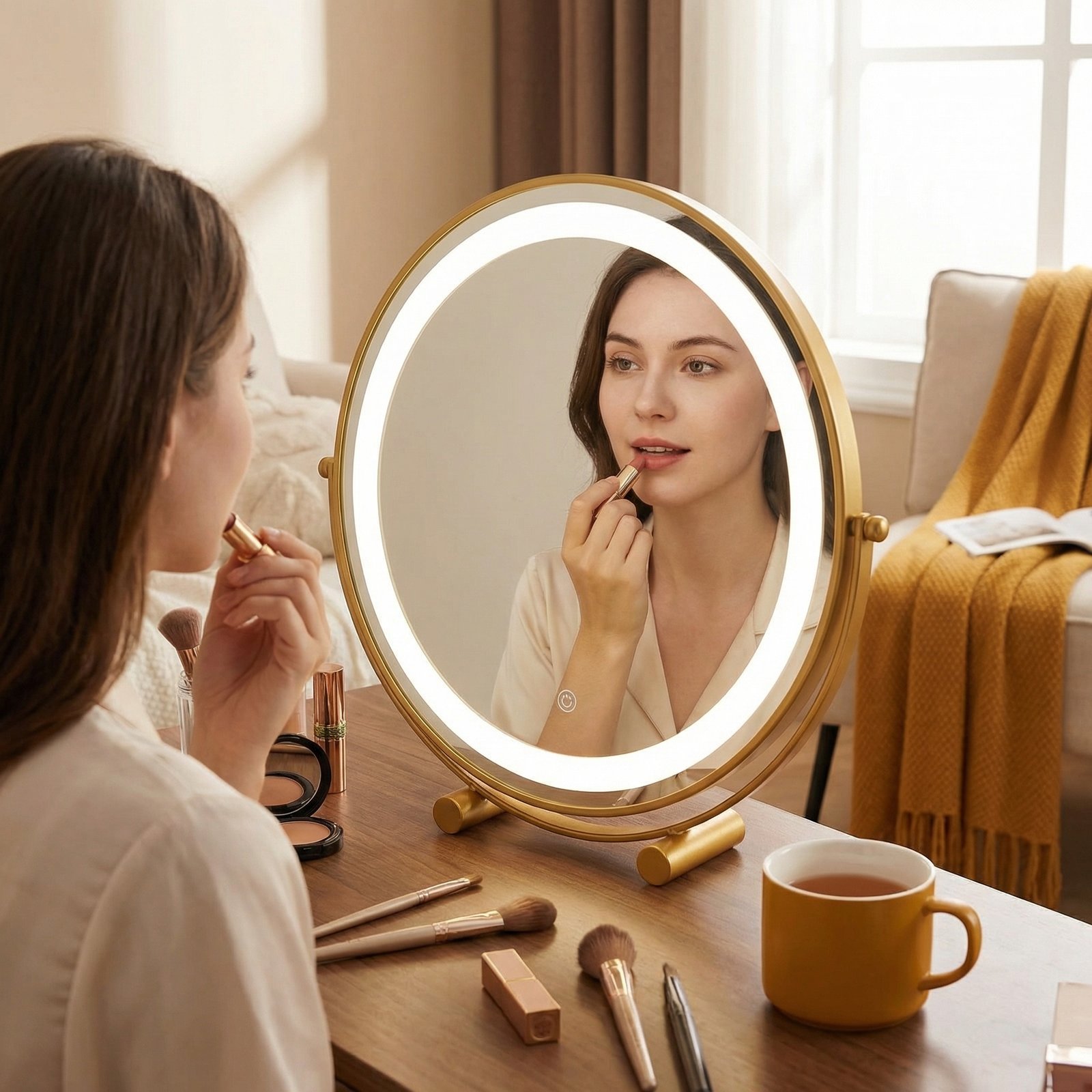 Experience flawless beauty with the AuraGlow LED Vanity Mirror. Designed for perfection, this illuminated dressing table mirror features three distinct lighting modes—warm, cool, and natural daylight. Adjust the intensity via smart touch control to recreate any environment, ensuring your foundation, contour, and highlight look seamless from dawn until dusk.