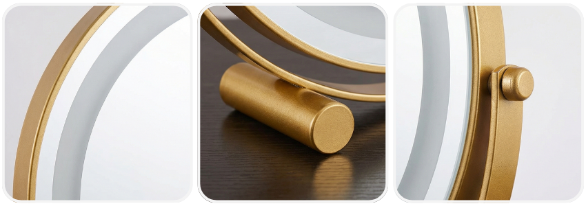 Craft a professional setup with the 360-degree rotating frame and sleek 30cm HD glass. This makeup mirror with lights includes a detachable 15x magnifying spot mirror, allowing for precision eyeliner and grooming. The durable metal construction provides stability, making it the ultimate vanity mirror for any modern bedroom or dressing room decor.