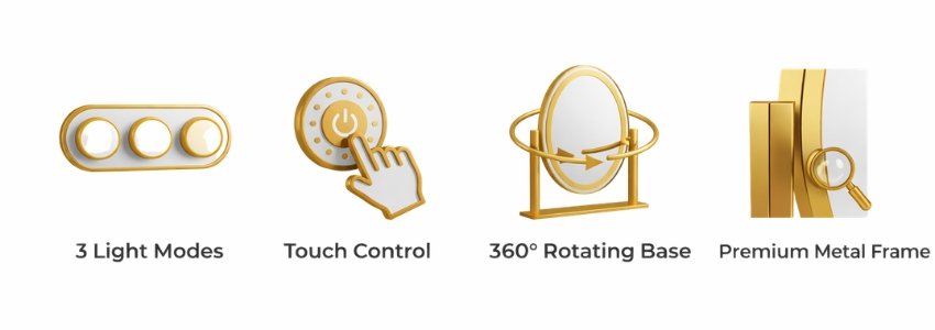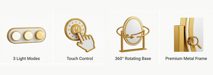 - 3 Lighting Modes: Seamlessly switch between warm, natural, and cool light settings.