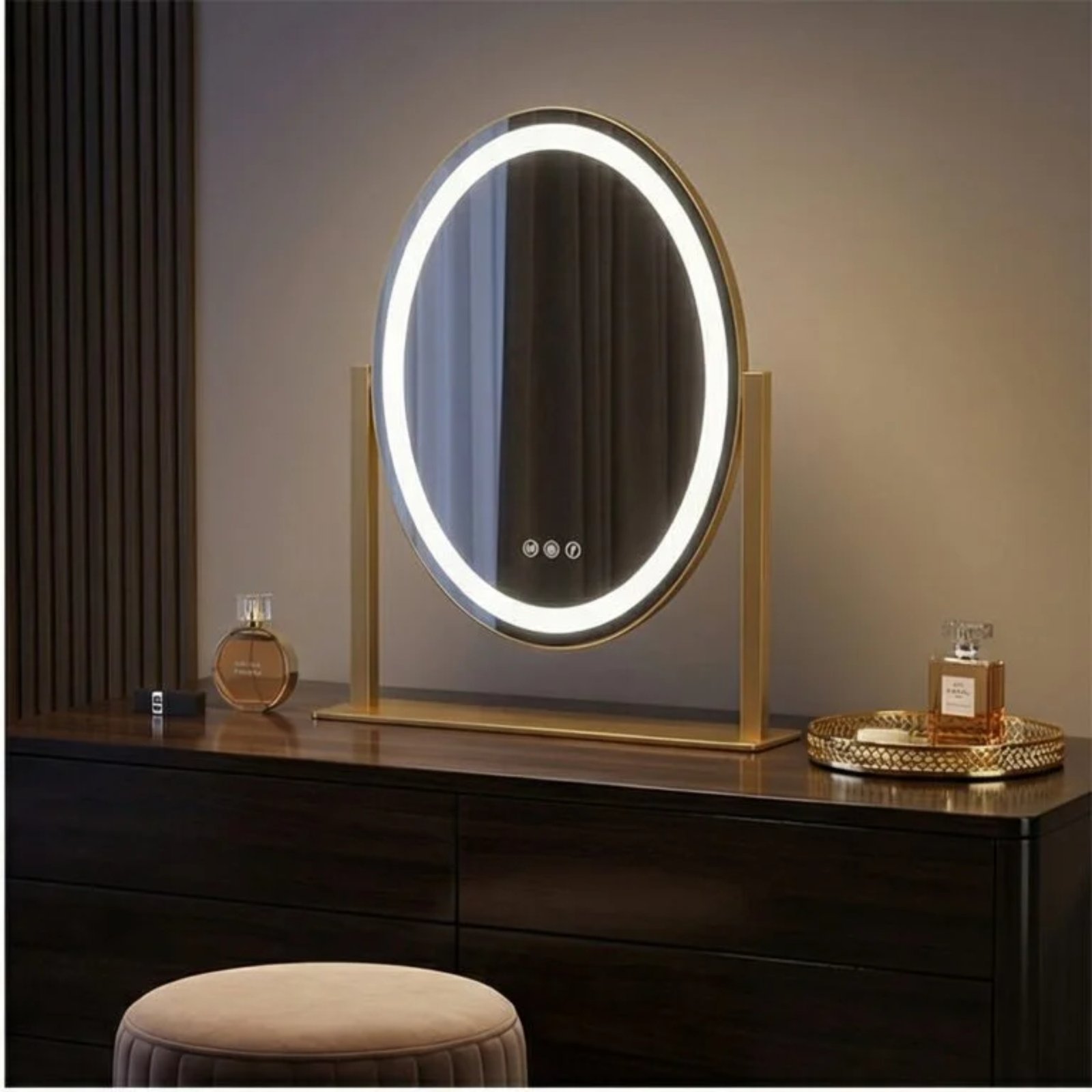 Equipped with smart touch controls, you can easily toggle between three light temperatures and adjust brightness levels. The 360-degree rotation ensures you find the perfect angle for every detail. Built with durable materials and energy-efficient LEDs, this illuminated dressing table mirror is the ultimate tool for achieving a polished, salon-quality look every morning.