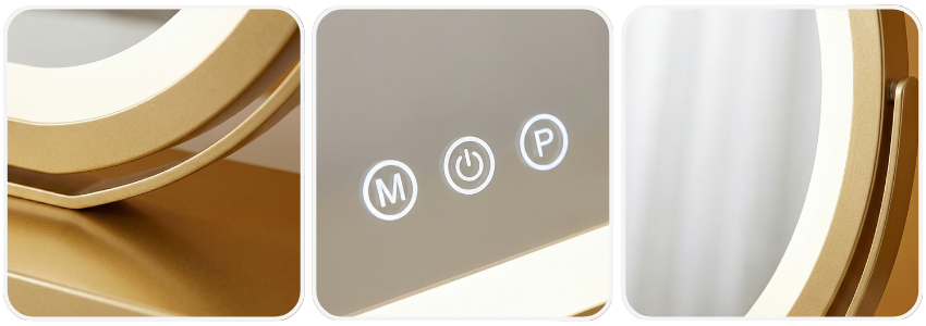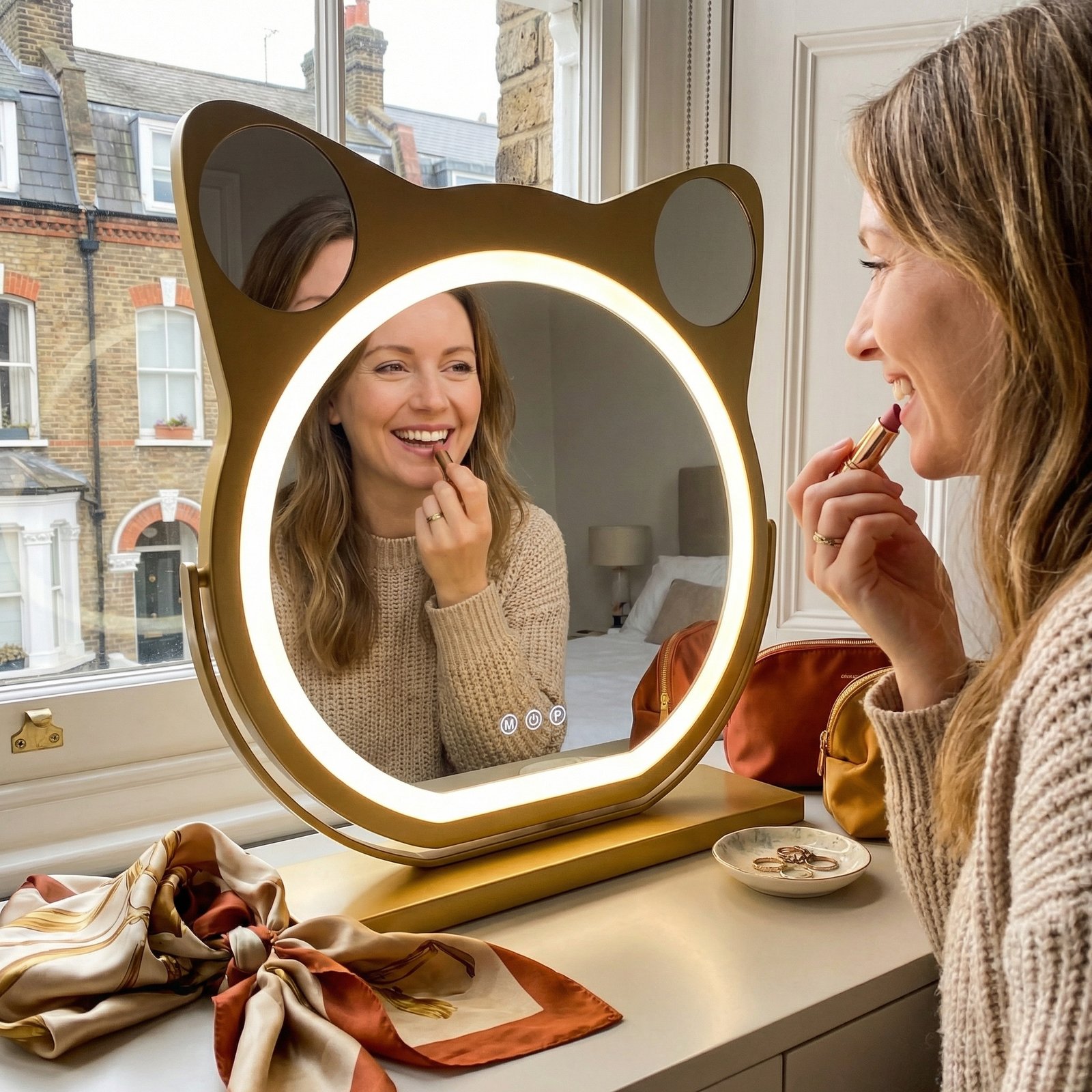 Achieve professional results at home with the PurrGlow LED Makeup Mirror. Designed with integrated lighting and three adjustable colour temperatures, this mirror eliminates shadows for flawless application. Its high-definition glass and elegant gold frame provide a premium vanity experience, making it the perfect focal point for any stylish British dressing table setup.
