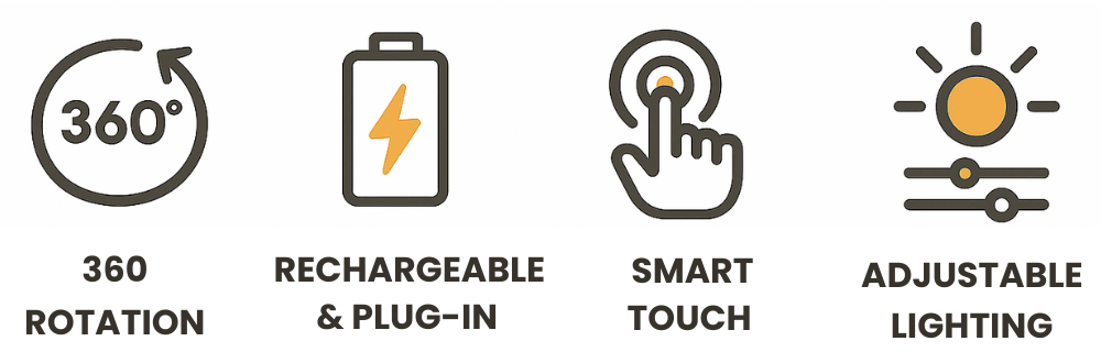 • 360° Rotation – Easily adjust to the perfect angle.